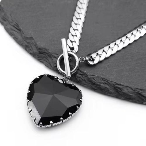 Cross-border gothic punk heart-shaped necklace for women, glass heart pendant, collarbone chain accessory